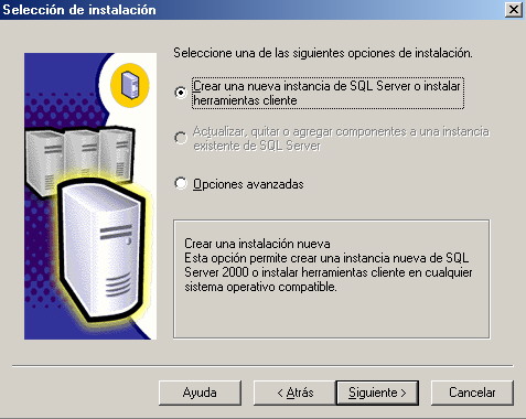 2) Seleccionar ‘Componentes de SQL Server 2000’ y luego “ Instalar servidor de Base de datos”.